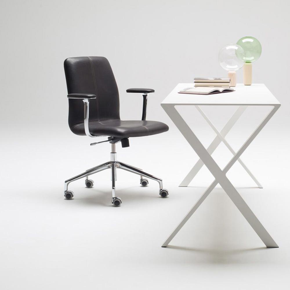 Seat and back upholstered in fabric, synthetic nubuck, synthetic leather or soft leather.