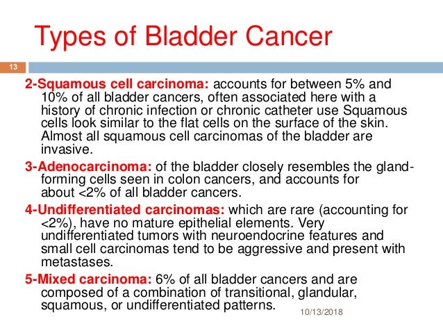 Bladder Cancer from image.slidesharecdn.com If the cancer cells are flat, it indicates that the cancer is aggressive and has a tendency to spread, he. Flat cancers don't grow toward the hollow part of the bladder. Bladder cancer is a common urologic cancer that has the highest recurrence rate of any malignancy.